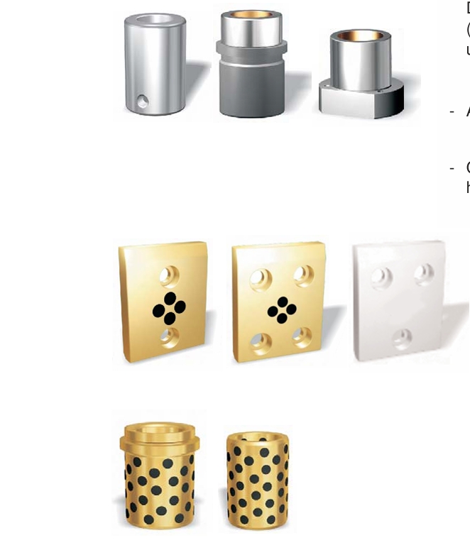 可作為安裝在模具中的完整組裝單元,支柱被固定以防止脫落,導軌免維護 / 自潤滑。